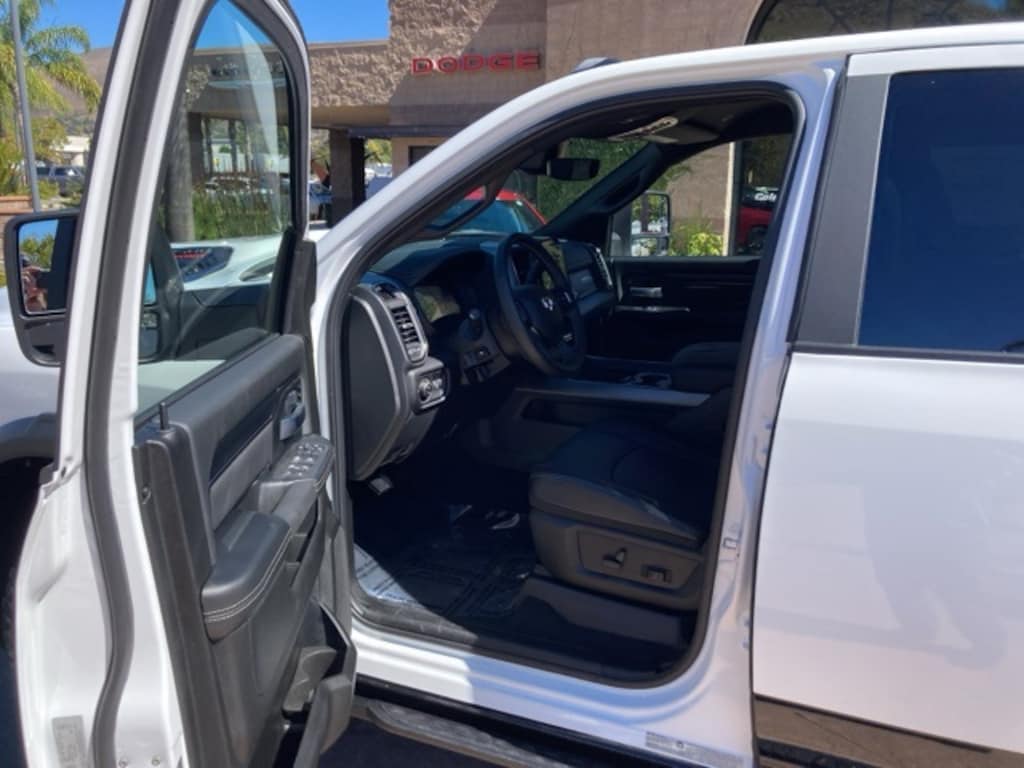 115V Auxiliary Rear Power Outlet, 2 Way Rear Headrest Seat, 4 Way Front Headrests, 4-Wheel Disc Brakes, 4G LTE Wi-Fi Hot Spot, 6 Speakers, 9 Alpine Speakers w/Subwoofer, ABS brakes, Adjustable pedals, Air Conditioning, Alexa Built-In, Alloy wheels, AM/FM radio: SiriusXM with 360L, Apple CarPlay, Apple CarPlay/Android Auto, Auto Adjust In Reverse Exterior Mirrors, Auto Dim Exterior Mirror, Auto High Beam Headlamp Control, Auto Power-Folding Mirrors, Auto-Dimming Exterior Passenger Mirror, Auto-dimming Rear-View mirror, Automatic temperature control, Bed Convenience Group, Black Exterior Mirrors, Black Wheel Center Hub, Block heater, Body Color Door Handles, Brake assist, Bucket Seats, Cloth Heated Power Bench Seat, Compass, Connected Travel & Traffic Services, Connectivity - US/Canada, Delay-off headlights, Disassociated Touchscreen Display, Driver door bin, Dual front impact airbags, Dual front side impact airbags, Dual Wireless Charging Pad, Electronic Stability Control, Emergency Vehicle Alert System (EVAS), Exterior Mirrors Courtesy Lamps, Exterior Mirrors w/Heating Element, Exterior Mirrors w/Memory, Exterior Mirrors w/Supplemental Signals, Folding Flat Load Floor Storage, Forward & Reverse Utility Lights, Front anti-roll bar, Front Center Armrest w/Storage, Front Door Locks 2-Door Passive Entry, Front dual zone A/C, Front fog lights, Front License Plate Bracket, Front reading lights, Front Seat Back Map Pockets, Full Length Upgraded Floor Console, Fully automatic headlights, Global Telematics Box Module (TBM), Google Android Auto, GPS Antenna Input, GPS Navigation, HD Radio, Heated door mirrors, Heated Front Seats, Heated front seats, Heated Second Row Seats, Heated Steering Wheel, Heated steering wheel, High Back Seats, Illuminated entry, Integrated Voice Command w/Bluetooth, Leather steering wheel, Leather Trimmed Bucket Seats (PL), LED Bed Lighting, LED Dome Lamp w/On/Off Switch, LED Interior Lighting, Low tire pressure warning, Manufacturer's Statement of Origin, Media Hub w/2 Charge Only USBs, Mirror Running Lights, MOPAR Front & Rear Rubber Floor Mats, MOPAR Spray In Bedliner, Navigation System, Occupant sensing airbag, Off-Road Info Pages, Outside temperature display, Overhead airbag, Overhead console, Overhead LED Lamps, Panic alarm, ParkView Rear Back-Up Camera, Passenger door bin, Passenger vanity mirror, Power 2-Way Driver Lumbar Adjust, Power 2-Way Passenger Lumbar Adjust, Power Adjust 8-Way Driver Seat, Power Adjust 8-Way Front Passenger Seat, Power Adjust Mirrors, Power Adjustable Convex Aux Mirrors, Power Adjustable Pedals w/Memory, Power door mirrors, Power driver seat, Power Heated Fold Telescopic Mirrors w/Memory, Power steering, Power Telescoping Mirrors, Power windows, Premium Overhead Console, Quick Order Package 24R Rebel, Radio data system, Radio: Uconnect 5 Nav w/12.0" Display, Radio/Driver Seat/Mirrors/Pedals Memory, Rain Sensitive Windshield Wipers, Rear 60/40 Folding Seat, Rear anti-roll bar, Rear seat center armrest, Rear step bumper, Rear window defroster, Rebel Level 1 Equipment Group, Remote keyless entry, Security system, Selectable Tire Fill Alert, SiriusXM Radio Service, SiriusXM w/360L, Speed control, Split folding rear seat, Sport Performance Hood, Steering wheel mounted audio controls, Sun Visors w/Illuminated Vanity Mirrors, Tachometer, Tilt steering wheel, Traction control, Trailer Tow Pages, Trip computer, Turn signal indicator mirrors, Universal Garage Door Opener, Variably intermittent wipers, Vendor Painted Cargo Box, Vendor Painted Cargo Box Tracking, Ventilated Front Seats, Voltmeter, Wheels: 20" x 8.0" Black Diamond Cut Aluminum.