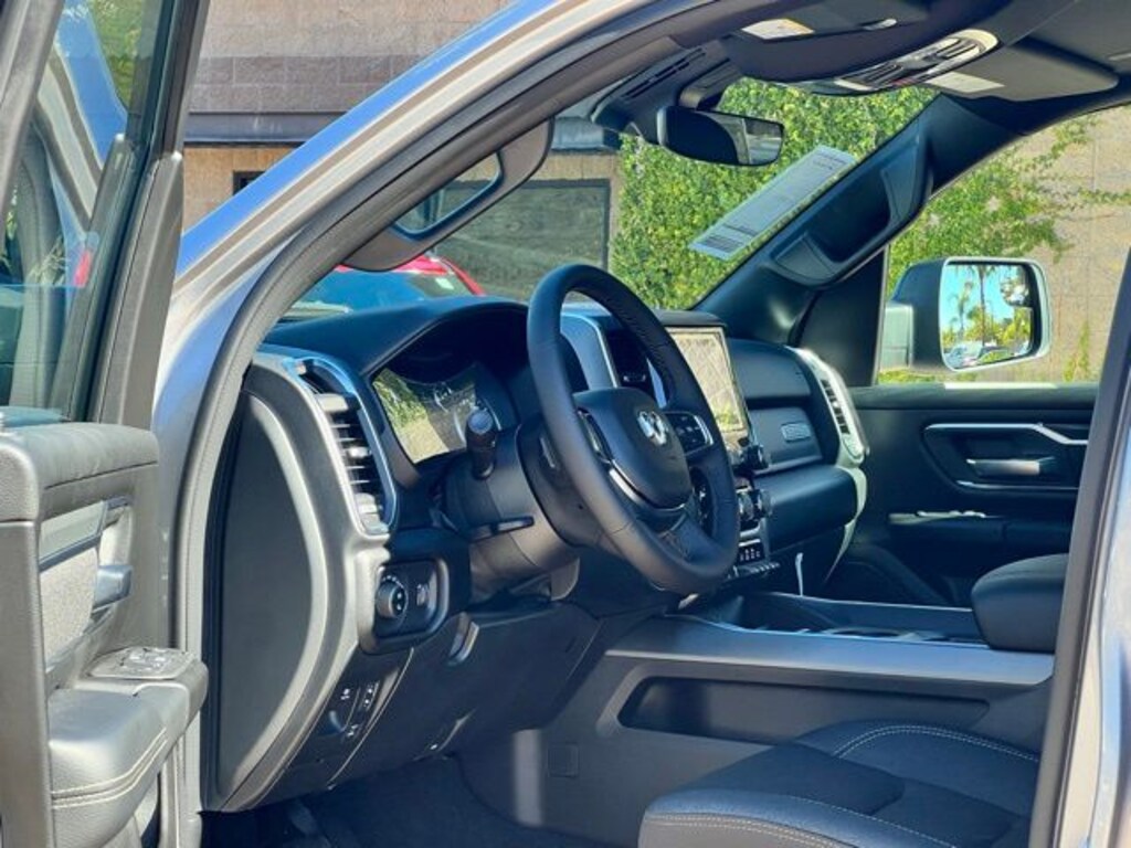115V Auxiliary Power Outlet, 2nd Row in Floor Storage Bins, 3 Rear Seat Head Restraints, 33 Gallon Fuel Tank, 4 Way Front Headrests, 4-Wheel Disc Brakes, 400W Inverter, 48V Belt Starter Generator, 4G LTE Wi-Fi Hot Spot, 6 Speakers, ABS brakes, Accent Color Door Handles, Accent Color Premium Power Mirrors, Accent Color Tailgate Handle, Air Conditioning, Alloy wheels, AM/FM radio, Anti-Spin Differential Rear Axle, Apple CarPlay, Apple CarPlay/Android Auto, Auto High-beam Headlights, Auto Power-Folding Mirrors, Auto-Dimming Exterior Driver Mirror, Auto-Dimming Rear-View Mirror, Bed Utility Group, Big Horn Level 1 Equipment Group, Black Exterior Mirrors, Black Exterior Truck Badging, Black Headlamp Bezels, Black Interior Accents, Black Painted Exterior Mirrors Caps, Black Premium Power Mirrors, Black Tail Lamp Bezels, Body Color Fender Flares, Body Color Front Bumper, Body Color Rear Bumper with Step Pads, Brake assist, Bucket Seats, Bumpers: chrome, Center Console Parts Module, Cloth Bucket Seats, Compass, Connectivity - US/Canada, Convex Wide-Angle Exterior Mirror Insert, Delay-off headlights, Deluxe Cloth Bucket Seats, Driver door bin, Dual Exhaust with Black Tips, Dual front impact airbags, Dual front side impact airbags, Electronic Stability Control, Exterior 115V AC Outlet, Exterior Mirrors Courtesy Lamps, Exterior Mirrors with Heating Element, Exterior Mirrors with Supplemental Signals, Front anti-roll bar, Front Bucket Seats, Front Center Armrest w/Storage, Front fog lights, Front License Plate Bracket, Front reading lights, Front Seat Back Map Pockets, Front wheel independent suspension, Full Length Floor Console, Fully automatic headlights, Global Telematics Box Module, Glove Box Lamp, Google Android Auto, GPS Antenna Input, Grille Black Surround Black Mesh, Heated door mirrors, Heated Front Seats, Heated Steering Wheel, Illuminated entry, Integrated Center Stack Radio, Integrated Voice Command with Bluetooth, Leather Wrapped Steering Wheel, Low tire pressure warning, Manual Adjust 4-Way Driver Seat, Manual Adjust 4-Way Front Passenger Seat, Manual Folding Exterior Mirrors, Manufacturer's Statement of Origin, MOPAR 4 Adjustable Cargo Tie-Down Hooks, MOPAR Spray in Bedliner, Night Edition, Occupant sensing airbag, Outside temperature display, Overhead airbag, Overhead console, Panic alarm, ParkView Rear Back-Up Camera, Passenger door bin, Passenger vanity mirror, Pick-Up Box Lighting, Power 2-Way Driver Lumbar Adjust, Power Adjust 8-Way Driver Seat, Power Adjustable Pedals, Power door mirrors, Power steering, Power windows, Protection Group, Quick Order Package 27Z Big Horn, Radio data system, Radio: Uconnect 5 W with 8.4" Display, RAM Grille Badge - Black, RAM Grille Badge - Chrome, Rear 60/40 Folding Seat, Rear anti-roll bar, Rear Center Armrest, Rear Dome with on/Off Switch Lamp, Rear Power Sliding Window, Rear step bumper, Rear Wheelhouse Liners, Rear Window Defroster, Remote keyless entry, SiriusXM Radio Service, SiriusXM Satellite Radio, Speed control, Steering Wheel Mounted Audio Controls, Sun Visors with Illuminated Vanity Mirrors, Supplier Part Tracking (J-1), Tachometer, Telescoping steering wheel, Tilt steering wheel, Tow Hooks, Traction control, Trailer Brake Control, Trip computer, Universal Garage Door Opener, USB Host Flip, Variably intermittent wipers, Voltmeter, Wheels: 20" x 9.0" Aluminum Painted Clad.