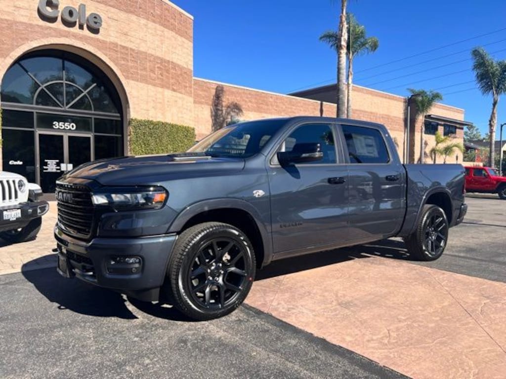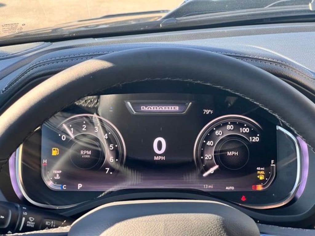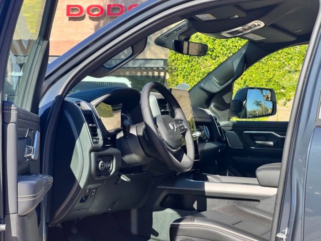 10 Speakers, 14.4" Touchscreen Display, 33 Gallon Fuel Tank, 4-Wheel Disc Brakes, 4G LTE Wi-Fi Hot Spot, ABS brakes, Accent Color Door Handles, Accent Color Premium Power Mirrors, Accent Color Tailgate Handle, Active Noise Control System, Adjustable pedals, Air Conditioning, Alloy wheels, AM/FM radio: SiriusXM with 360L, Anti-Spin Differential Rear Axle, Apple CarPlay/Android Auto, Audio memory, Auto High-beam Headlights, Auto Power-Folding Mirrors, Auto-dimming door mirrors, Auto-Dimming Exterior Driver Mirror, Auto-dimming Rear-View mirror, Automatic temperature control, Black Exterior Truck Badging, Black Headlamp Bezels, Black Interior Accents, Black Painted Exterior Mirrors Caps, Black Tail Lamp Bezels, Body Color Front Bumper, Body Color Rear Bumper with Step Pads, Brake assist, Bumpers: chrome, Chrome Exterior Mirrors, Cluster 12" TFT Color Display, Compass, Connected Travel and Traffic Services, Connectivity - US/Canada, Convex Wide-Angle Exterior Mirror Insert, Delay-off headlights, Driver door bin, Driver vanity mirror, Dual Exhaust with Black Tips, Dual front impact airbags, Dual front side impact airbags, Electronic Stability Control, Exterior Mirrors Approach Lamps, Exterior Mirrors Courtesy Lamps, Exterior Mirrors with Heating Element, Exterior Mirrors with Memory, Exterior Mirrors with Supplemental Signals, Front anti-roll bar, Front Bucket Seats, Front Center Armrest w/Storage, Front dual zone A/C, Front fog lights, Front License Plate Bracket, Front Passenger Interactive Display, Front reading lights, Front wheel independent suspension, Fully automatic headlights, Garage door transmitter, GPS Navigation, Grille Surround 3 Black Texture 2 Black, Harman/Kardon 19 Speaker Premium Sound, Heated door mirrors, Heated front seats, Heated rear seats, Heated steering wheel, Illuminated entry, Integrated Center Stack Radio, Integrated Voice Command with Bluetooth, Laramie Level 2 Equipment Group, Leather steering wheel, Leather Trimmed Bucket Seats, Low tire pressure warning, Manufacturer's Statement of Origin, Memory seat, Navigation System, Night Edition, Occupant sensing airbag, Off-Road Information Pages, Outside temperature display, Overhead airbag, Overhead console, Panic alarm, ParkView Rear Back-Up Camera, Passenger door bin, Passenger vanity mirror, Pedal memory, Pirelli Brand Tires, Power door mirrors, Power driver seat, Power passenger seat, Power steering, Power Tailgate, Power windows, Protection Group, Proximity Approach/Departure Lamps, Quick Order Package 27H Laramie, Radio data system, Radio: Uconnect 5 Nav with 14.4" Display, Radio: Uconnect 5 Navigation with 12.0" Display, Rain Sensitive Windshield Wipers, RAM Grille Badge - Black, RAM Grille Badge - Chrome, Rear anti-roll bar, Rear reading lights, Rear seat center armrest, Rear step bumper, Rear Wheelhouse Liners, Remote keyless entry, Security system, SiriusXM Radio Service, SiriusXM with 360L, Speed control, Split folding rear seat, Sport Performance Hood, Steering wheel mounted audio controls, Tachometer, Telescoping steering wheel, Tilt steering wheel, Tow Hooks, Traction control, Trailer Brake Control, Trip computer, Turn signal indicator mirrors, USB Host Flip, Variably intermittent wipers, Ventilated front seats, Voltmeter, Wheels: 20" x 9" Premium Paint/Polish, Wheels: 22" x 9" Forged Aluminum.